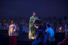 Leonard Bernstein's "Mass" was the first show Kate did in graduate school. Kate was the sound deck engineer. Her job was to monitor the 30 wireless microphones to make sure they where fully charged and functioning properly.